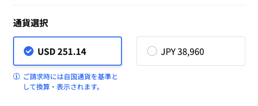 支払いの通貨選択はUSDを選択した。後日カード明細を確認したところ、USDだと 40,047円で決済されている。JPYよりも1,087円高くついてしまった。